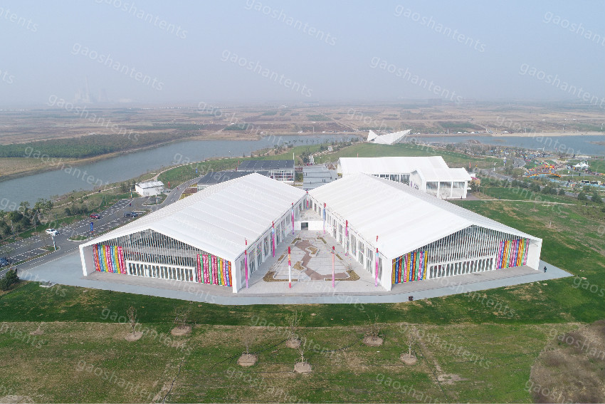 高山篷房,搭建快速靈活、堅固可靠,做到3米~50米任意跨度內無支撐障礙,搭建快速靈活、地形適應性強、結構組合多樣,廣泛應用于戶外展覽、商業活動、體育賽事、婚禮宴會以及物流倉儲、防災救災等領域。輔以高山研發的篷房配套模塊如除霾、防寒等設備設施,應用更廣,讓你的戶外活動擁有很多想象。